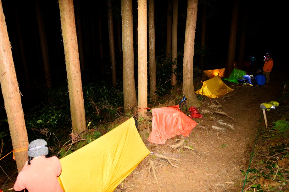 暗くなってからは、ヘッドライトをつけながらの実践となりました。暗闇の中での作業は昼間とは違い、難しくなります。そこで大切になってくるのがヘッドライトの明るさ!PETZLのACTIK COREは350ルーメンの明るさがあり、みなさんその明るさに驚いていました。