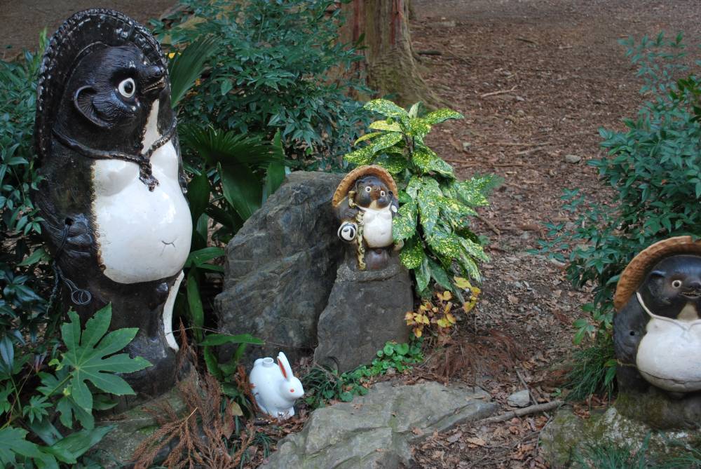 小仏峠に到着。いつからあるのか、タヌキの置物がお出迎え。
