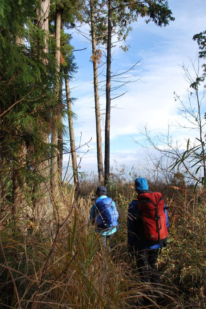 展望がきかないので周りの地形(派生している尾根など)や目印となる人工物などから現在地を把握します。