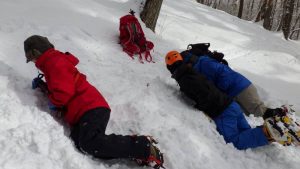 アイゼン、ピッケル、雪崩ビーコン、プローブ、シャベル等の冬山に欠かせない道具を使ってみようという、