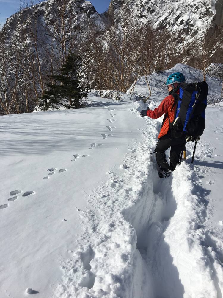 雪が深い場所や 風で飛ばされて固い場所や アイゼンが効く場所、ゆるくてズルズル滑る場所や さまざまなコンディションの場所でどう対応するか。