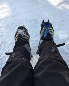 年始より雪が増えて小屋まではチェーンスパイク、小屋からは12本爪アイゼンに付け替えました。