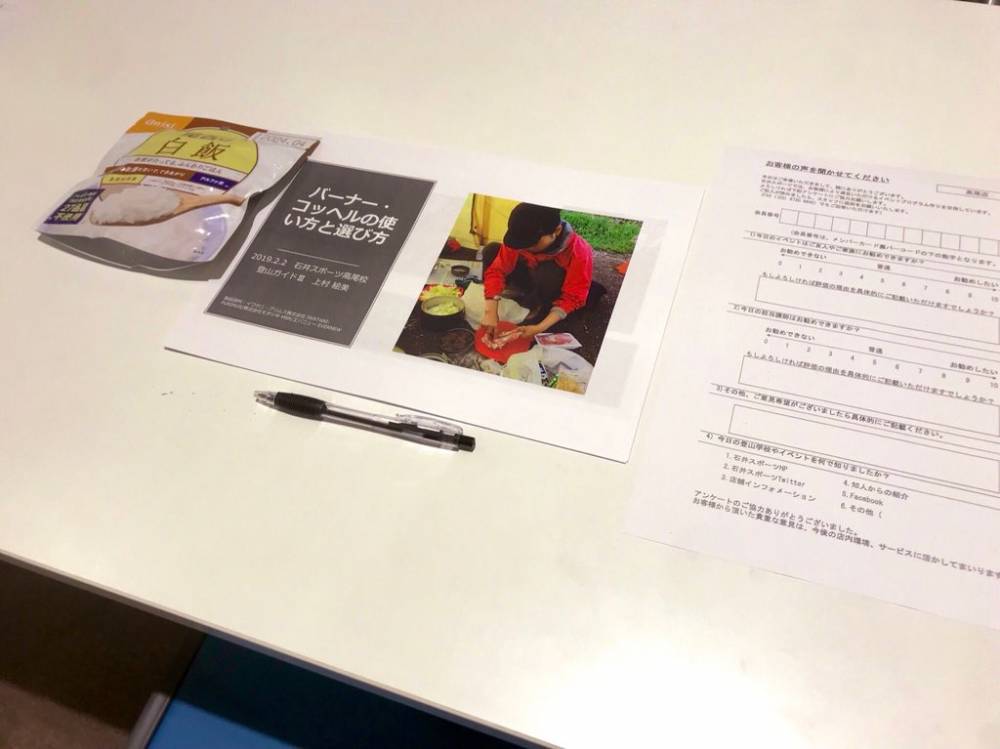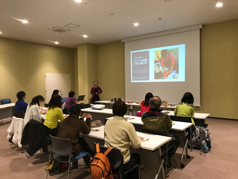 バーナーの種類・コッヘルの素材や大きさについて学びました。