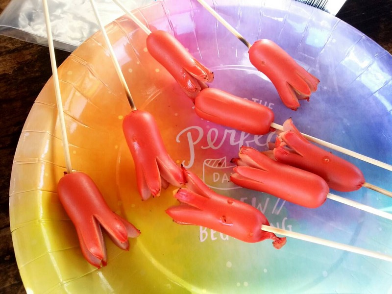 タコさんウインナーは竹クシに刺してバーナーで直接焼きました。