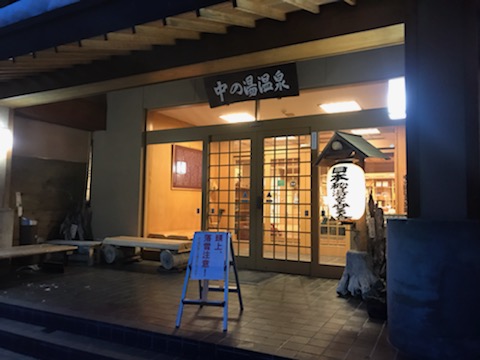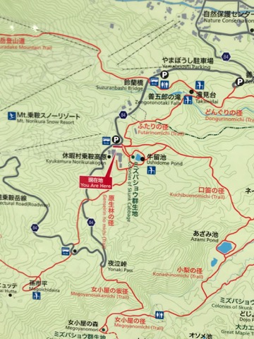 スノーハイクを楽しんだ後は、駐車場からバスに乗り、中の湯温泉旅館に向いました。この時点の現在地はこちらです。