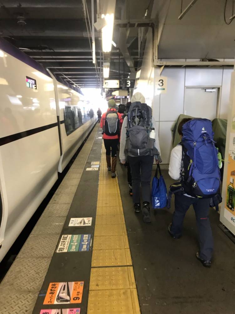 7:40新宿駅に集合し、8:00発あずさ5号で松本駅に向かいます。