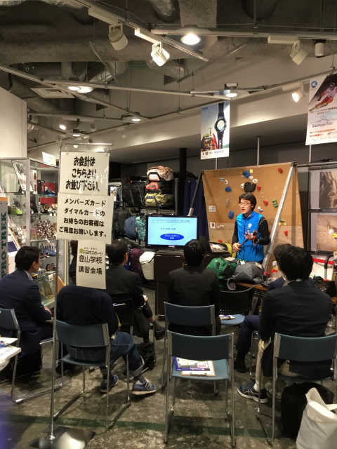 登山学校終了後には、実際に売り場でも質問を受け付けていました。