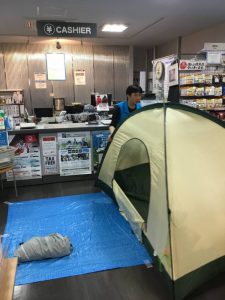 夜にトレイやテントの手直しで外に十数分いることを想定して、「上下防寒具(中綿・ダウン)」の着用で寝る事をオススメします。