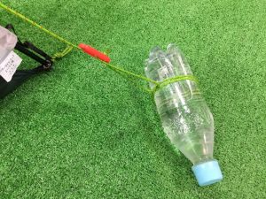 自在(オレンジ色の部品)の結び目で止まっている裏を引っ張り、石をくくればそれで十分です。石大きさ人の頭くらいの大きさが欲しい所です。