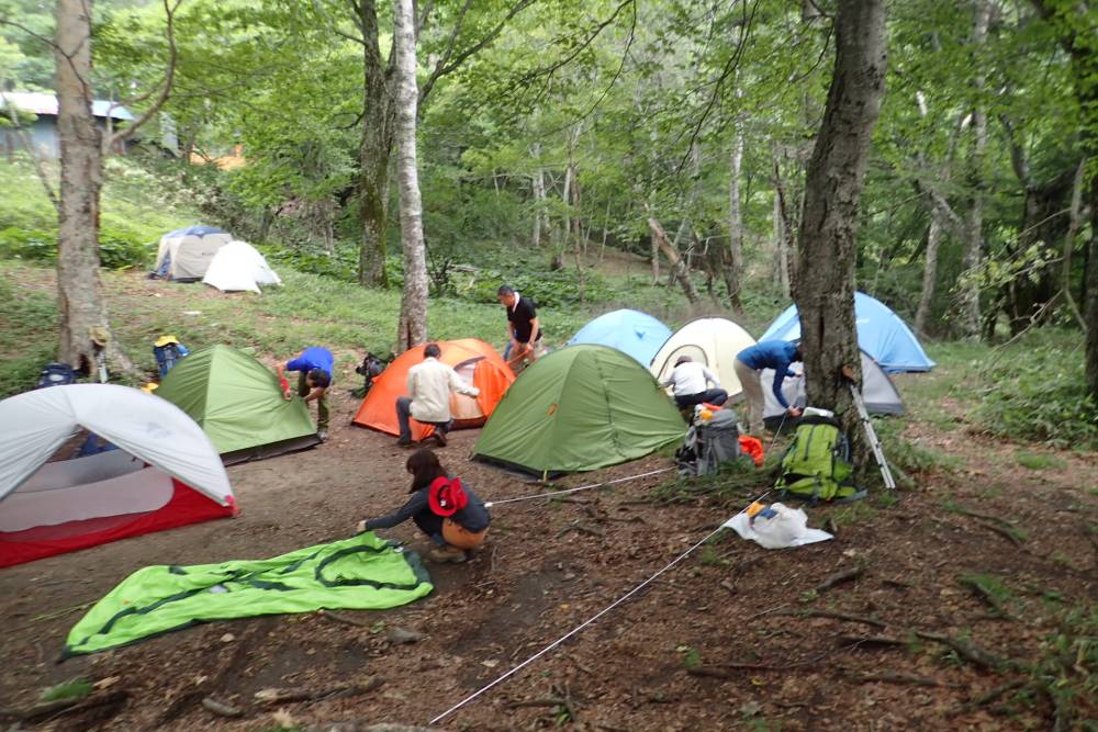 初日の午後は講習を交えながらテントを自分で張ってみましょう。夜は各自でご飯作って、シュラフで寝てみましょう。