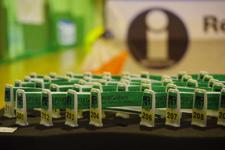 チームの内1人の腕にICタグを装着し記録を計測します。