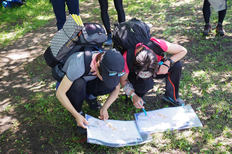 直前にナビゲーション講習があり、初めてのマウンテンマラソンでも安心して参加できます。ナビゲーション力を高めることはマウンテンマラソンだけでなく普段の登山スキルのアップにも最適です。地図上のコントロールを自分たちで取捨選択して高得点を狙いつつゴールを目指します。