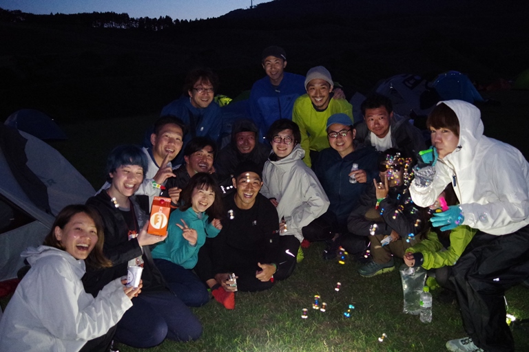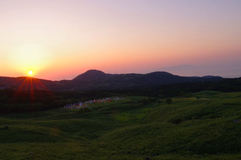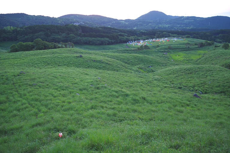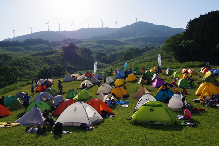 1日目のゴール細野高原は三筋山から広がる壮大な草原が特徴。普段はパラグライダーの着陸地点のためキャンプ禁止の場所ですが、今回の大会のため特別にテント設営が許可されています。