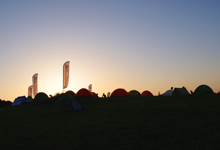 朝日を浴びて100張以上のテントが並ぶさまは圧巻!