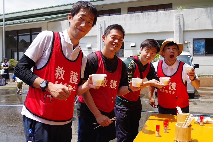 フィニッシュ後の会場ではキンキンに冷えたノンアルコールビール「オールフリー」と地元東伊豆町の地サイダー「伊豆ニューサマーサイダー」に加え、名物の「金目汁」が参加者に振る舞われました!