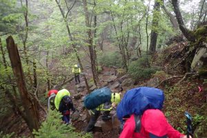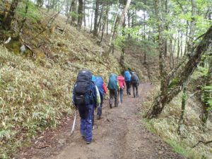 今日はテントを背負って縦走する体験です。