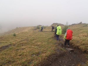 今は降ってませんが少し上は雲の中なのでレインパンツまも履きましょう。