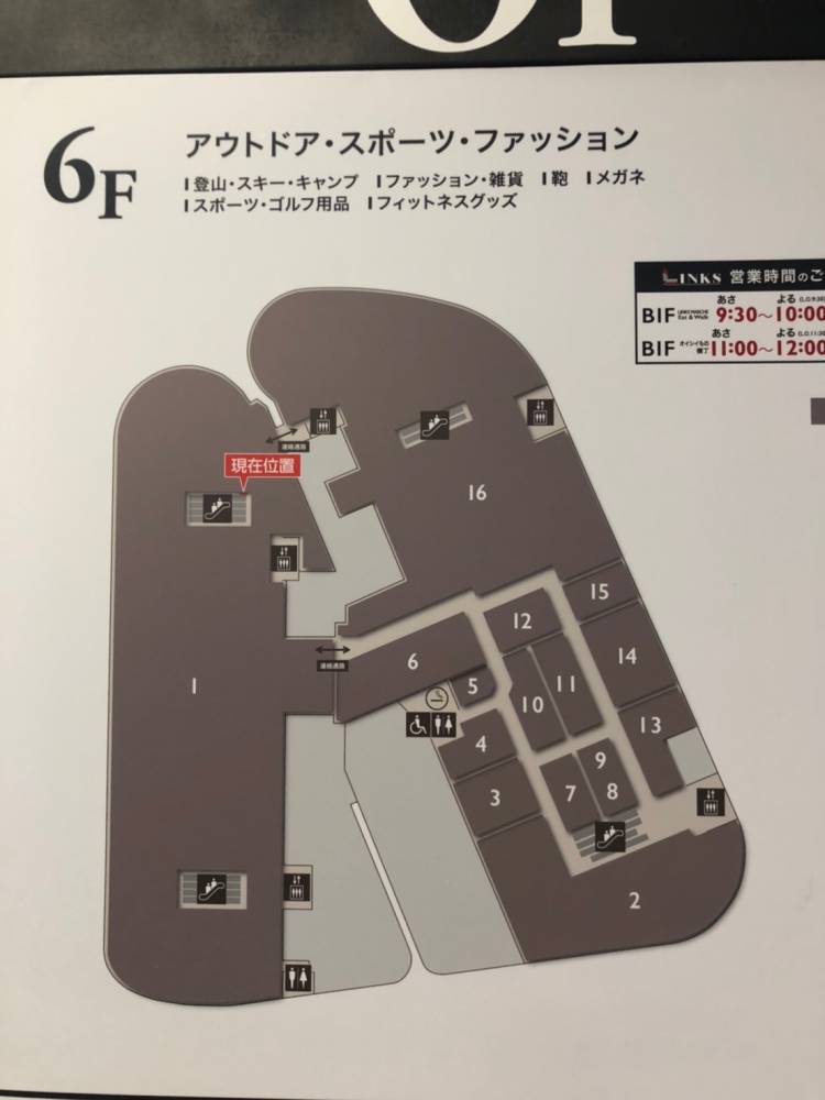 石井スポーツの店舗はリンクス梅田の6階にあります。同じく2階にあるアートスポーツ、5階にあるアートスポーツbaby&kidsについては後日紹介するとして、今回はまず「石井スポーツ」を見ていきましょう!