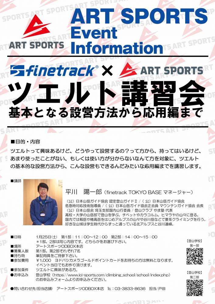 年明け1/25(土)にファイントラック・ツエルト講習会の開催が決定しました。