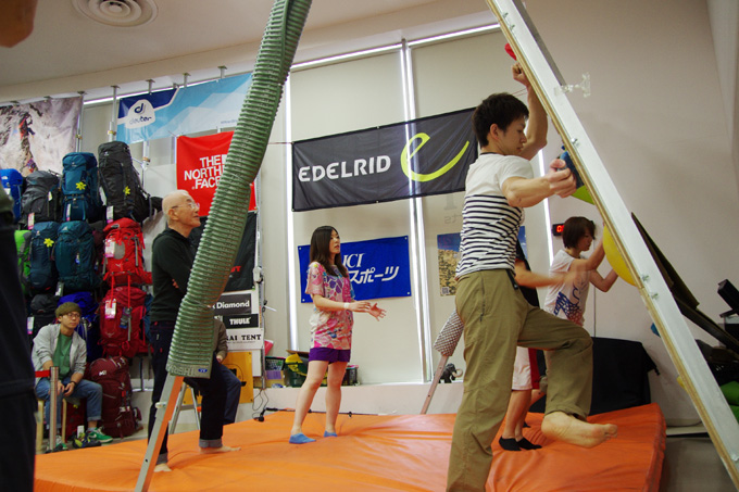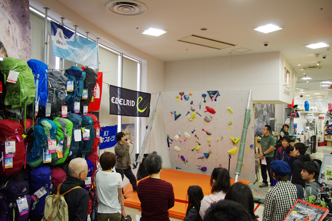 石井スポーツ立川店内 専用ボルダリングウォールにて!
