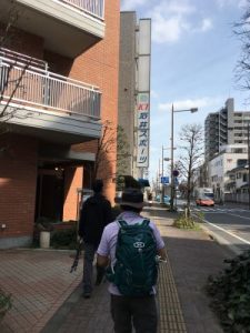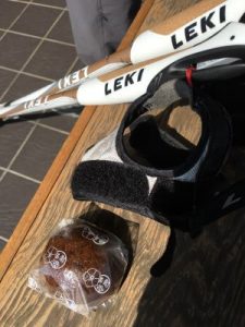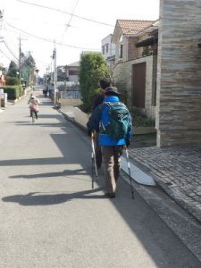 人通りが多い道なので、ノルディックウォーキングのストックで
