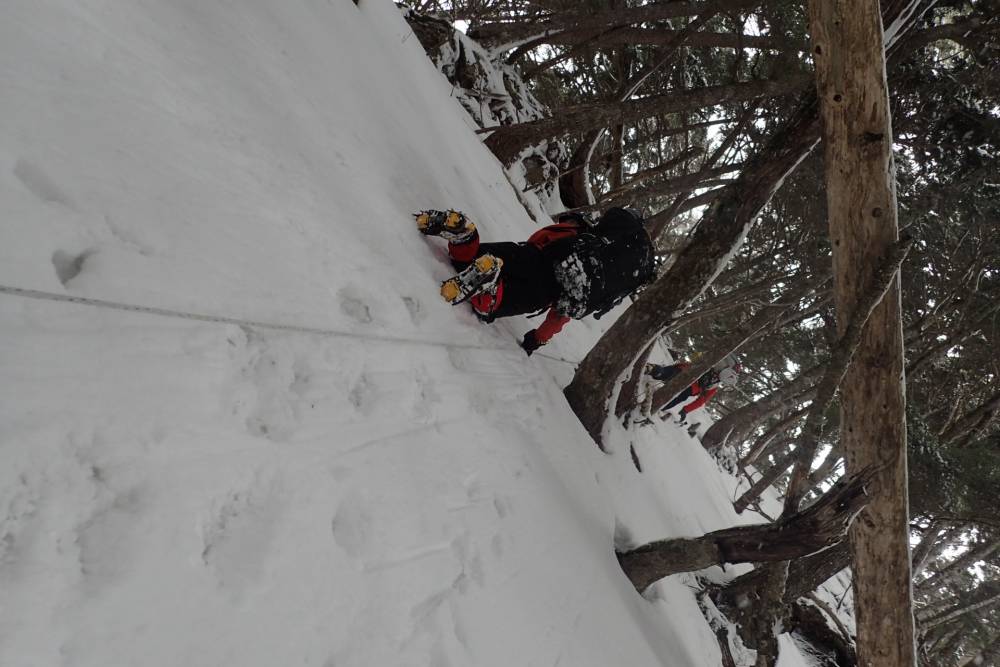 さて、ここから岩と雪のミックス・・・からのなぜか凍った所もチラホラ。