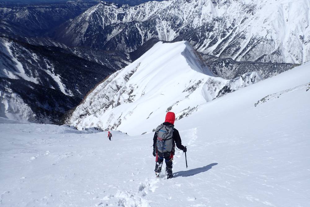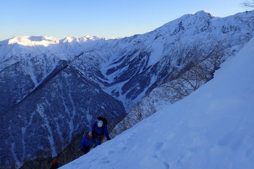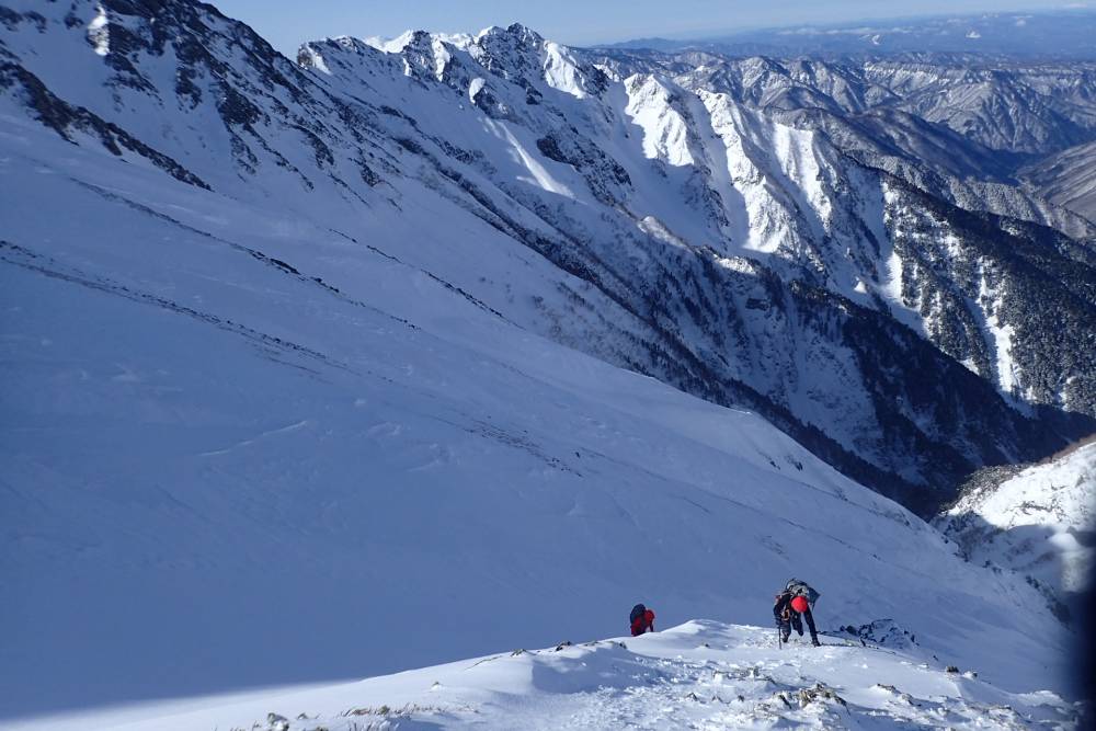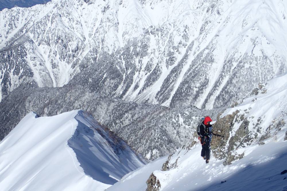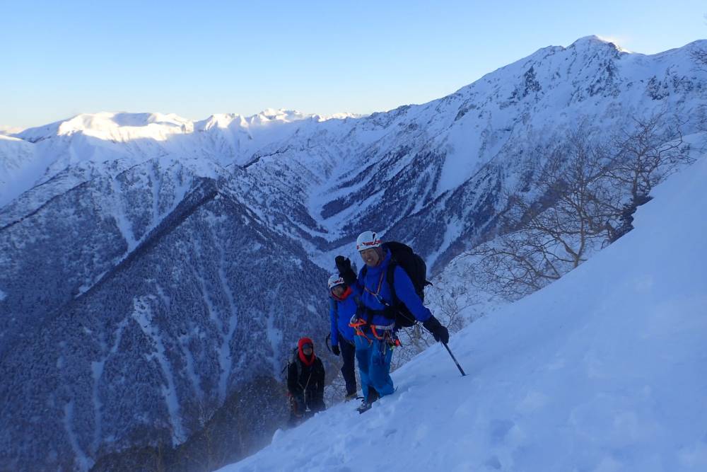 天野校長「おそらくこの雪の状況は奥穂まで続くかも・・こんなに悪いのは珍しい。」