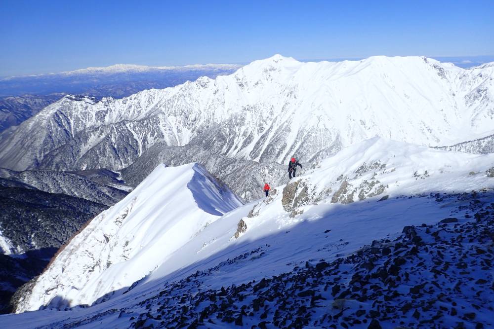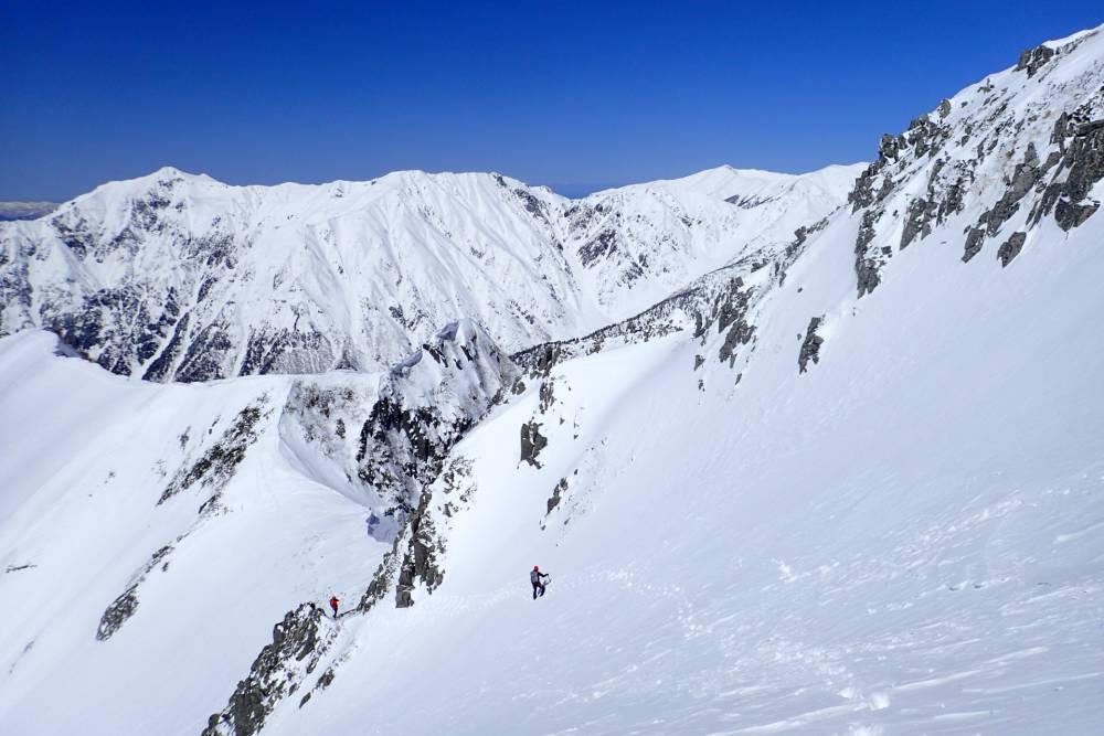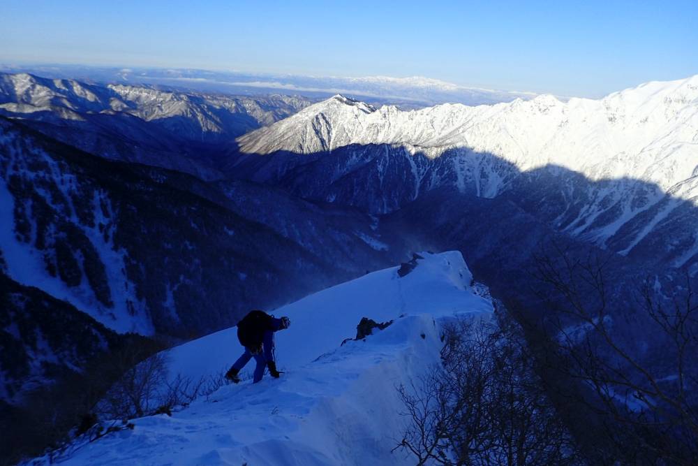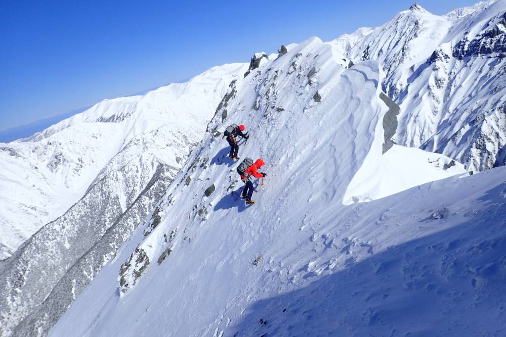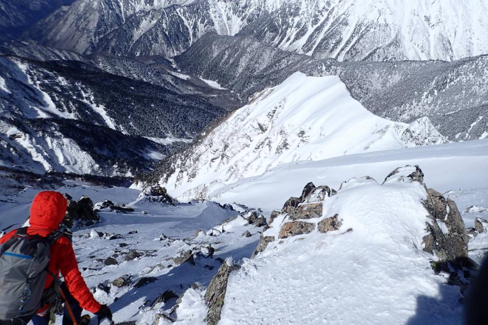 天野校長「おそらくこの雪の状況は奥穂まで続くかも・・こんなに悪いのは珍しい。」