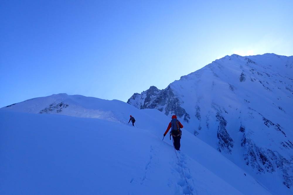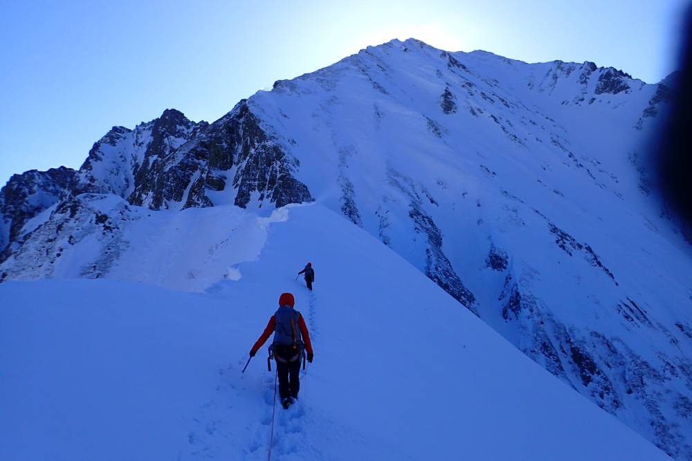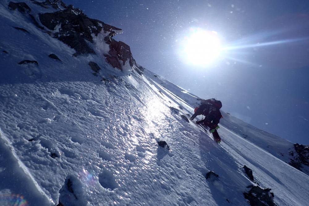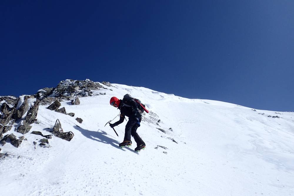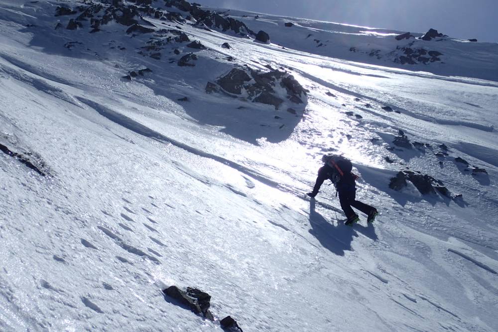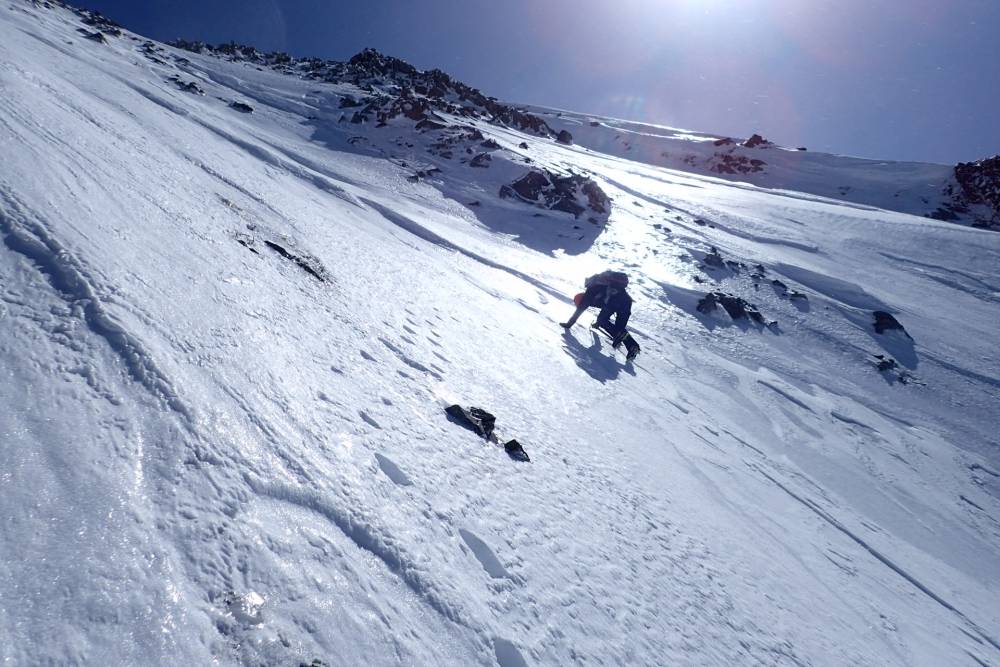 所々ピッケルアイゼンが刺さりにくい硬さ。。マジか。。