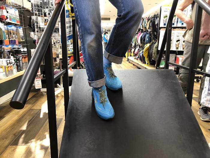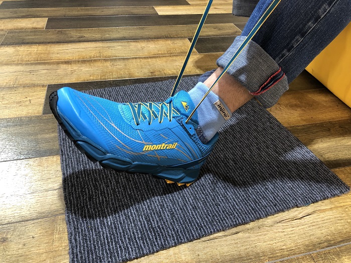 店頭でご案内時には、必ずトレイルランニング向けの靴下と併せてフィッティングを行っています。もちろん、ご自宅にいつも使っているトレイルランニング用靴下があればそちらを持参して頂いても構いません。