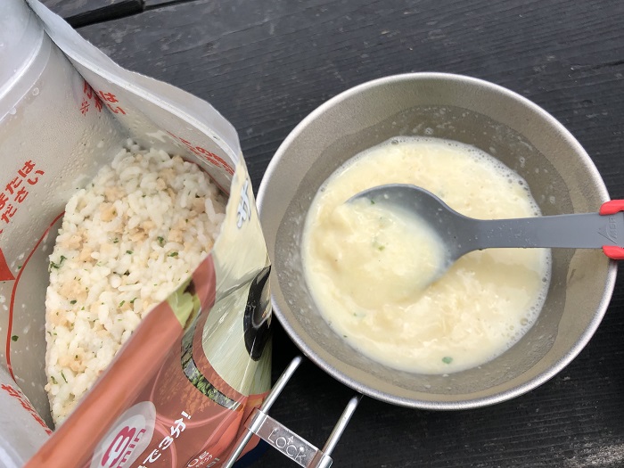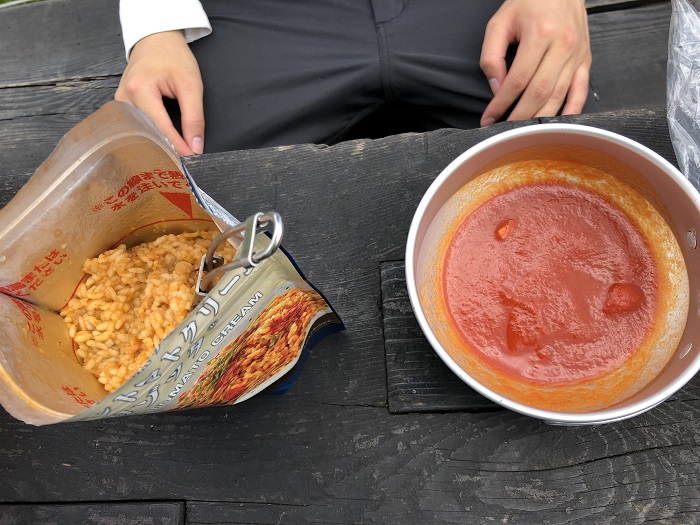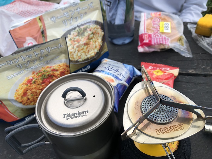 山頂から戻ってきて、日が傾き始める前にお昼です。