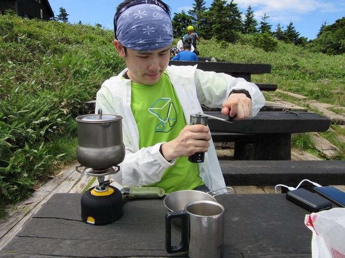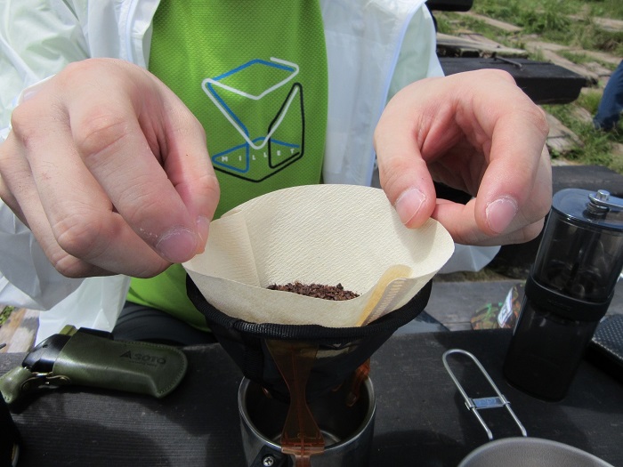 私は必ずコーヒーセットを持っていく派ですので、この日も友人にふるまわせていただきました。