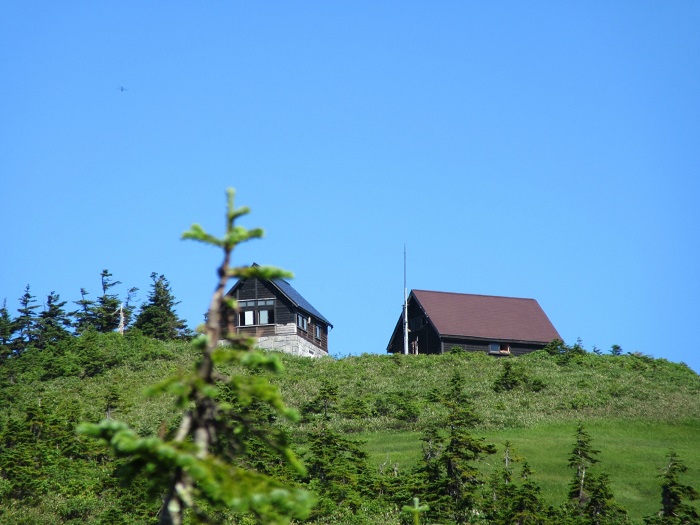東北地方最高峰の燧ケ岳(ひうちがたけ)を左手に見つつ、小屋まであと少しです。