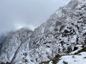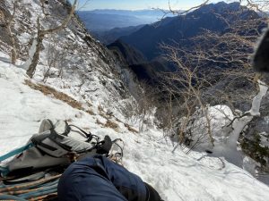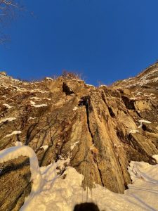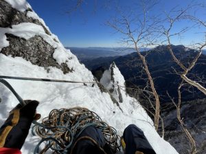 岩に雪が乗っていてホールドや支点を探りながらの登攀になりました