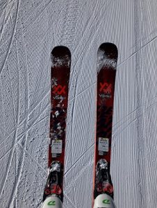 ・GSやSLの板と比べるとスピードの次元は落ちてしまいますが、角付けをあまりきつくしなければとても安定しています。たわみは出しやすく、一般スキーヤー上級者が使うと、どこでも楽しめるオールラウンドスキーになっています!