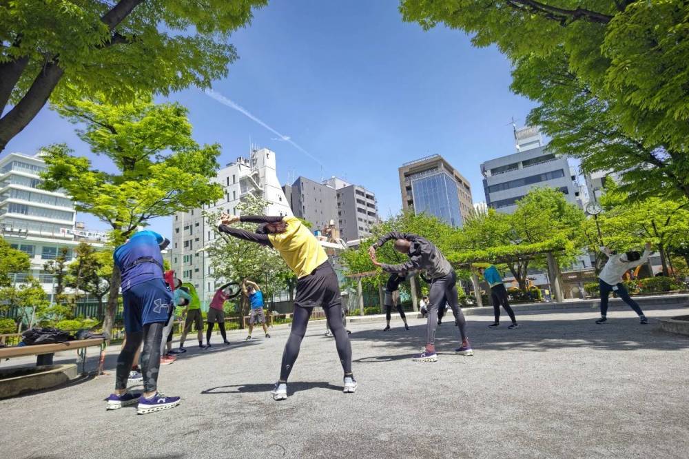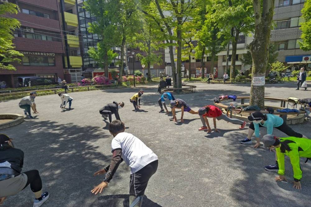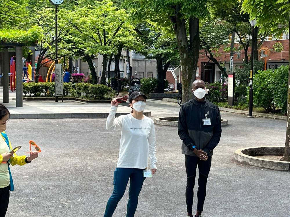 さて、たいやきを食べたら、ケニア式ドリルをおこなった公園に戻ります。