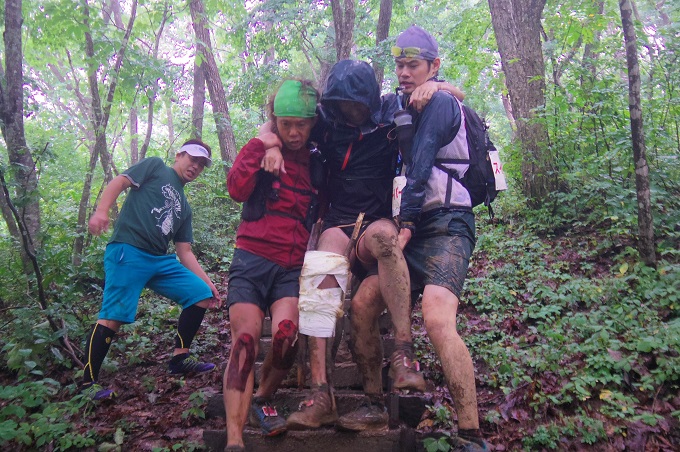 日本山岳耐久レース中に大岳山で発生した滑落事故対応時の様子