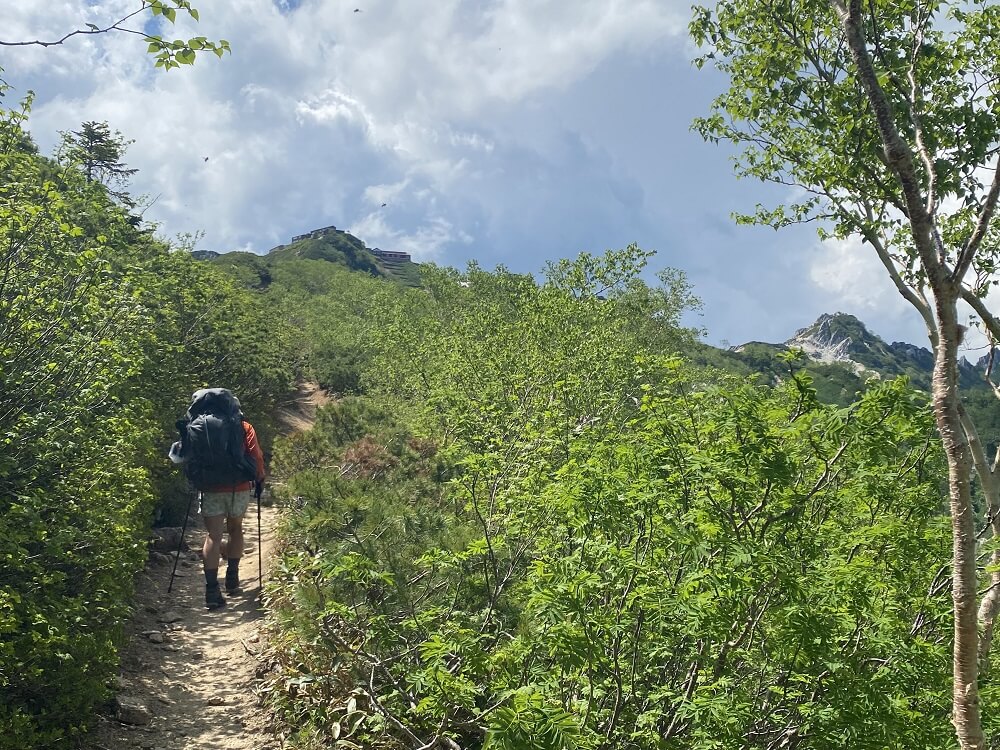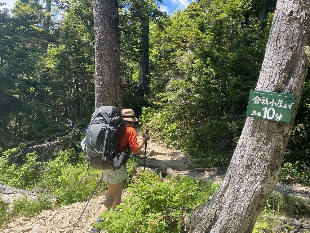 急登を登りきると、傾斜がゆるみ合戦小屋まであと少し。