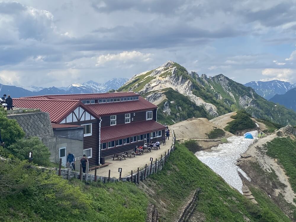 小屋の直下は、急ですが登り切ったら目的地の燕山荘です。目指す山頂の燕岳も見えます。
