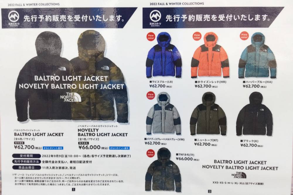 THE NORTH FACE 「バルトロライトジャケット」・「ノベルティーバルトロライトジャケット」