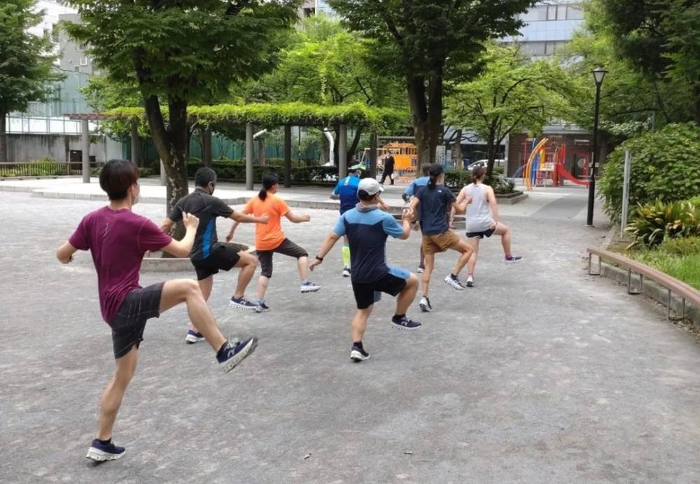 近くの木陰がある公園に移動し、ケニア式ドリルを皆でおこなった後、谷中 根津方面にゆるゆるとジョグ🏃