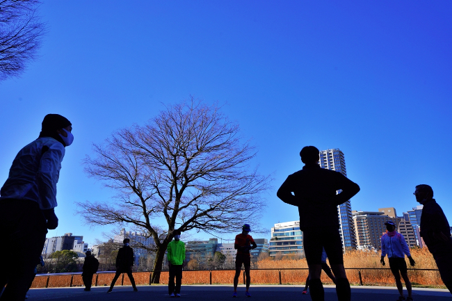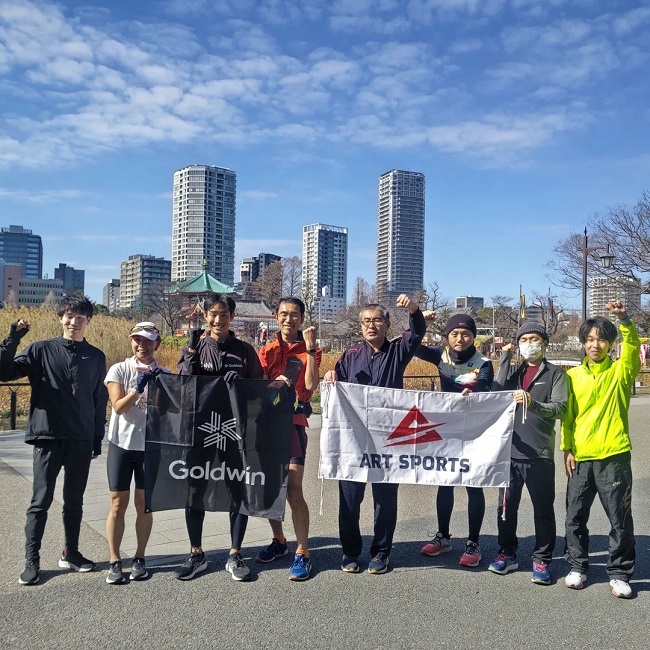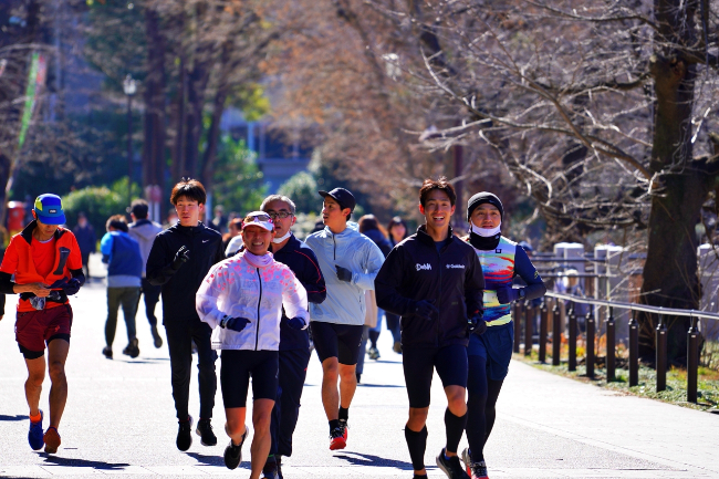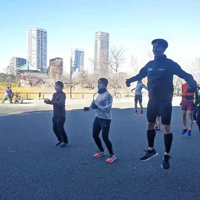 GOLDWINのタイツの説明後、アップがてらジョグで不忍池に移動。