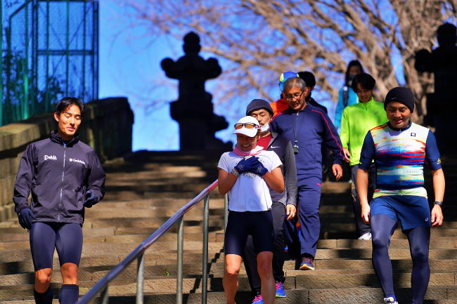 本当は3周の予定でしたが、階段と坂道を使った【ダッシュ練】をするので2周にしたそうです。