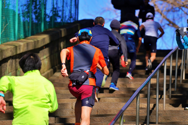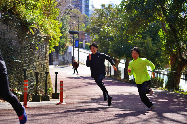 坂道ダッシュの2本目は、3秒後に館澤さんがスタートしています。