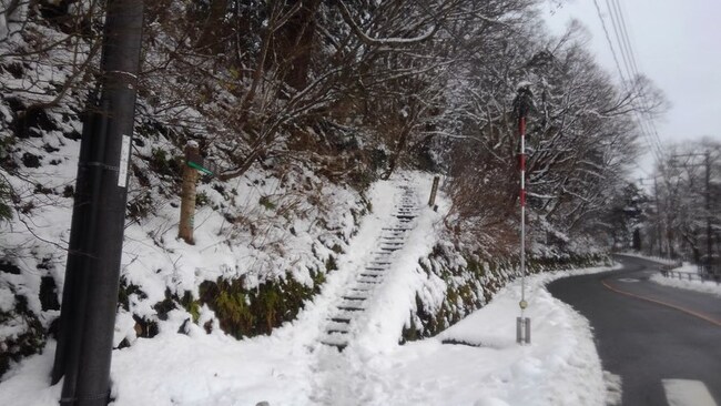 ベッドライト🔦の明かりを頼りに雪がしっかりついた❄️階段をひたすら登っていきます‼️
