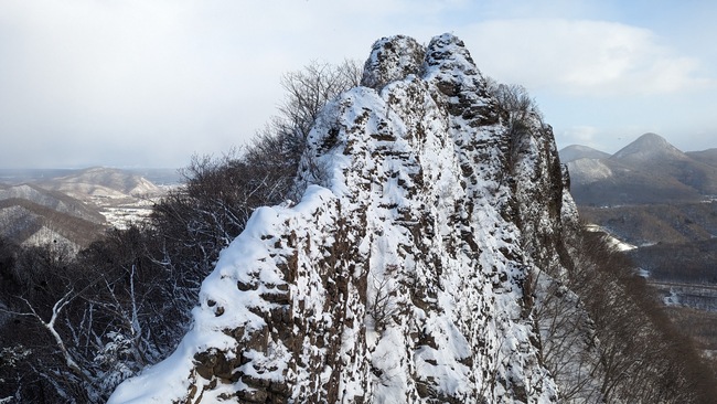 夏道を使えばあっという間に着いてしまう八剣山ですが、夏道とは反対の稜線から登ると、ギザギザの細い稜線をアップダウンを繰り返しながら登るいいアイゼントレーニングになります。