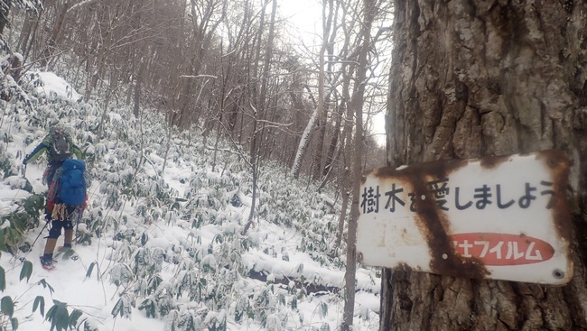 この日はツボで歩けるくらい積雪量が少ない状態で、稜線上はかなり歩きづらかったです。