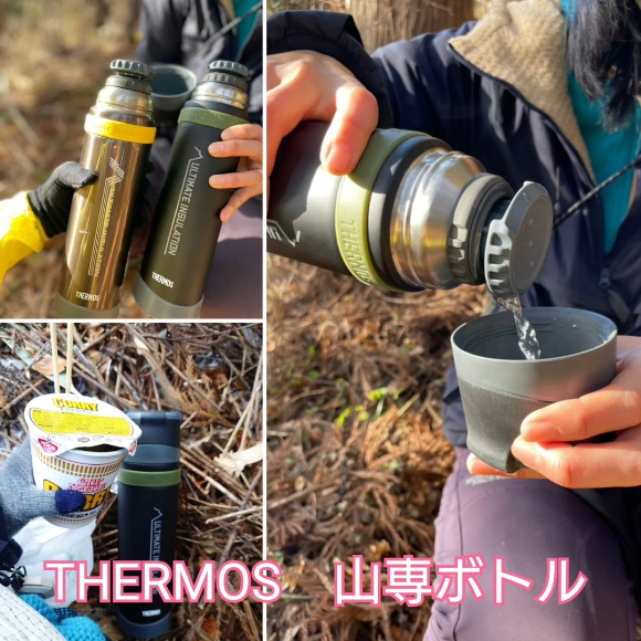 『THERMOS 山専ボトル』にお湯を入れてきたので、バーナー使わなくても、カップラーメンが食べられる!
