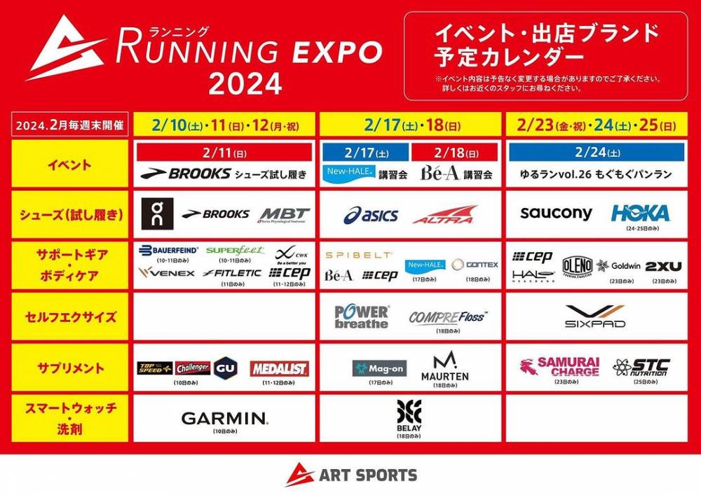 ランニングエキスポ2024開催迫る!【アートスポーツ本店】