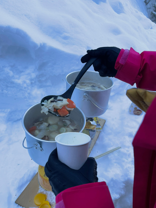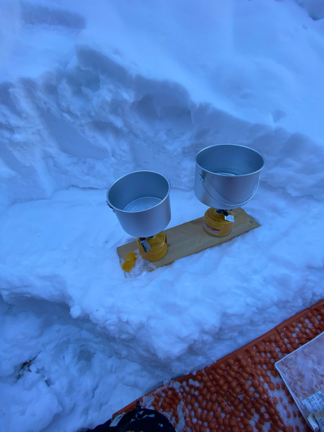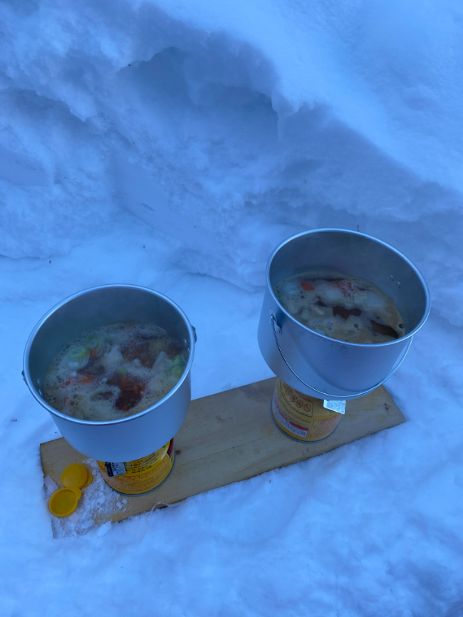 その間に荷物の置く場所や待機場所をスコップで整えます。